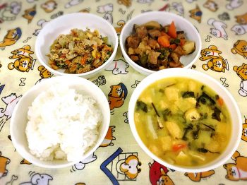 お味噌汁にはかぼちゃが入っていたのであまーいお味噌汁になり、子ども達にも好評でした