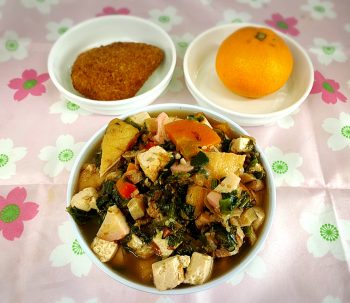 きつねうどん、ひき肉フライは子ども達が好きな献立ばかりなので